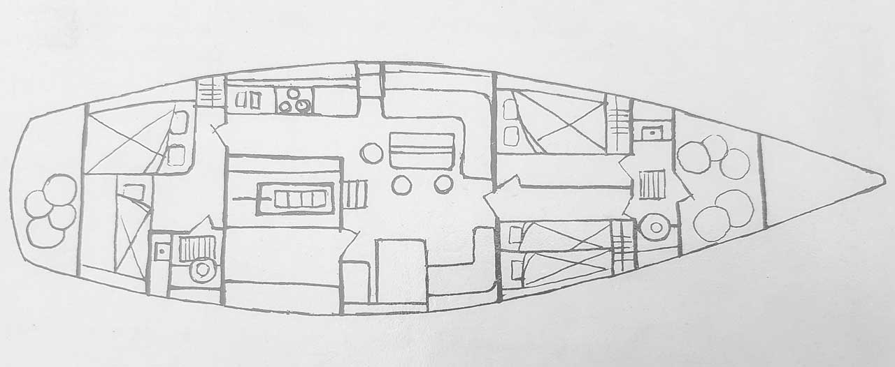 She was owned since new till 2018 by the same careful Swiss owner and has been sailed by the same husband and wife team (non-smokers) since new. Six North and South Atlantic crossings. Very safe in bad weather. Accident free.