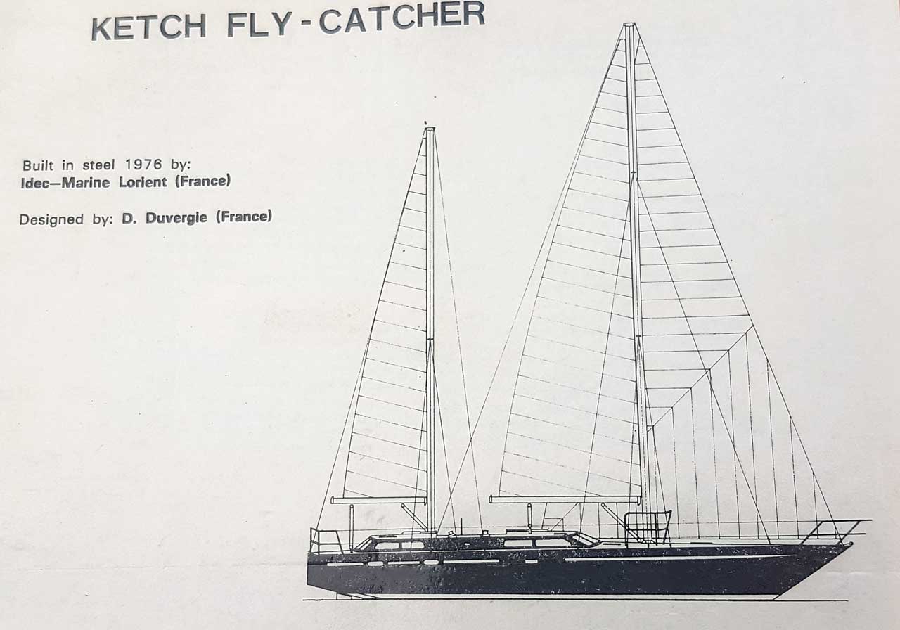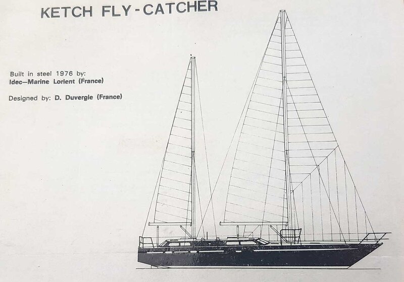 "FLYCATCHER" is a very strong, well-built monohull sailing yacht. Built in 1976 of USINOR steel at IDEC marine shipyard, Lorient-France. Sandblasted at shipyard and coated with 6 coats of 2-part epoxy paint, inside and out.