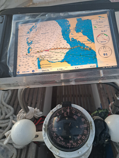 - - Goiot steering with Sestrel major compass.